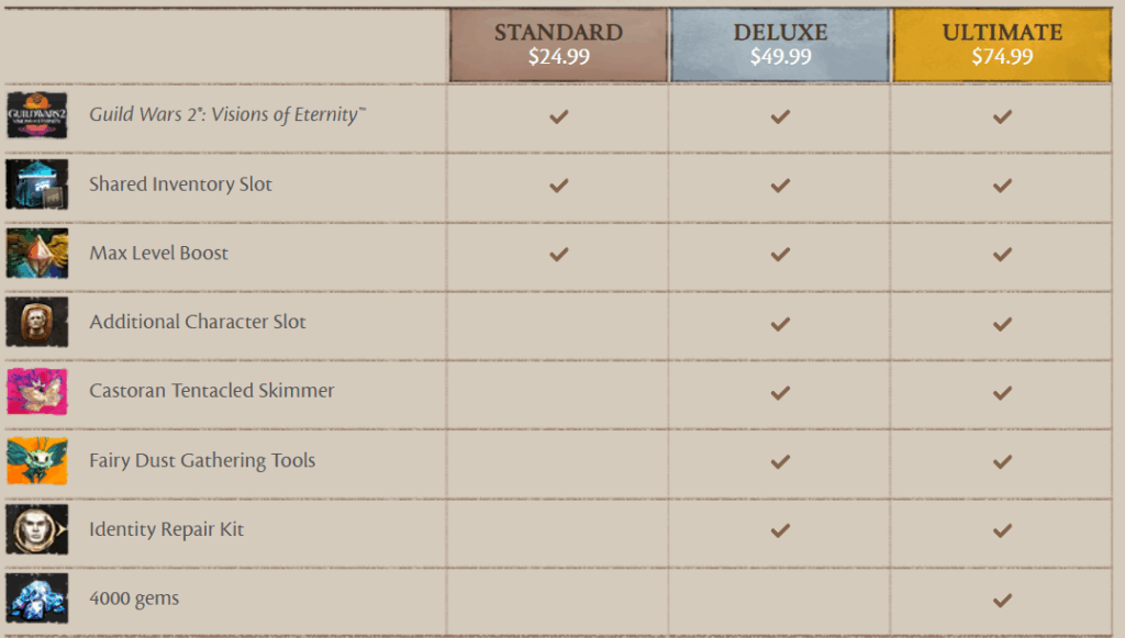 Guild Wars 2 pre-purchase editions and prices